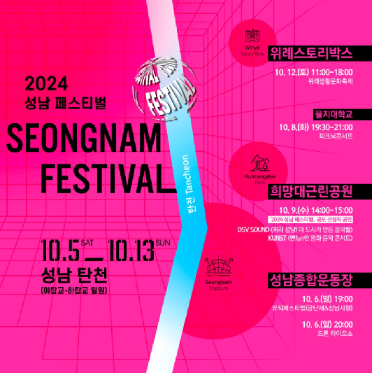 - 10/11(금)~13(일) : 성남아트센터, 탄천종합운동장, 성남시청